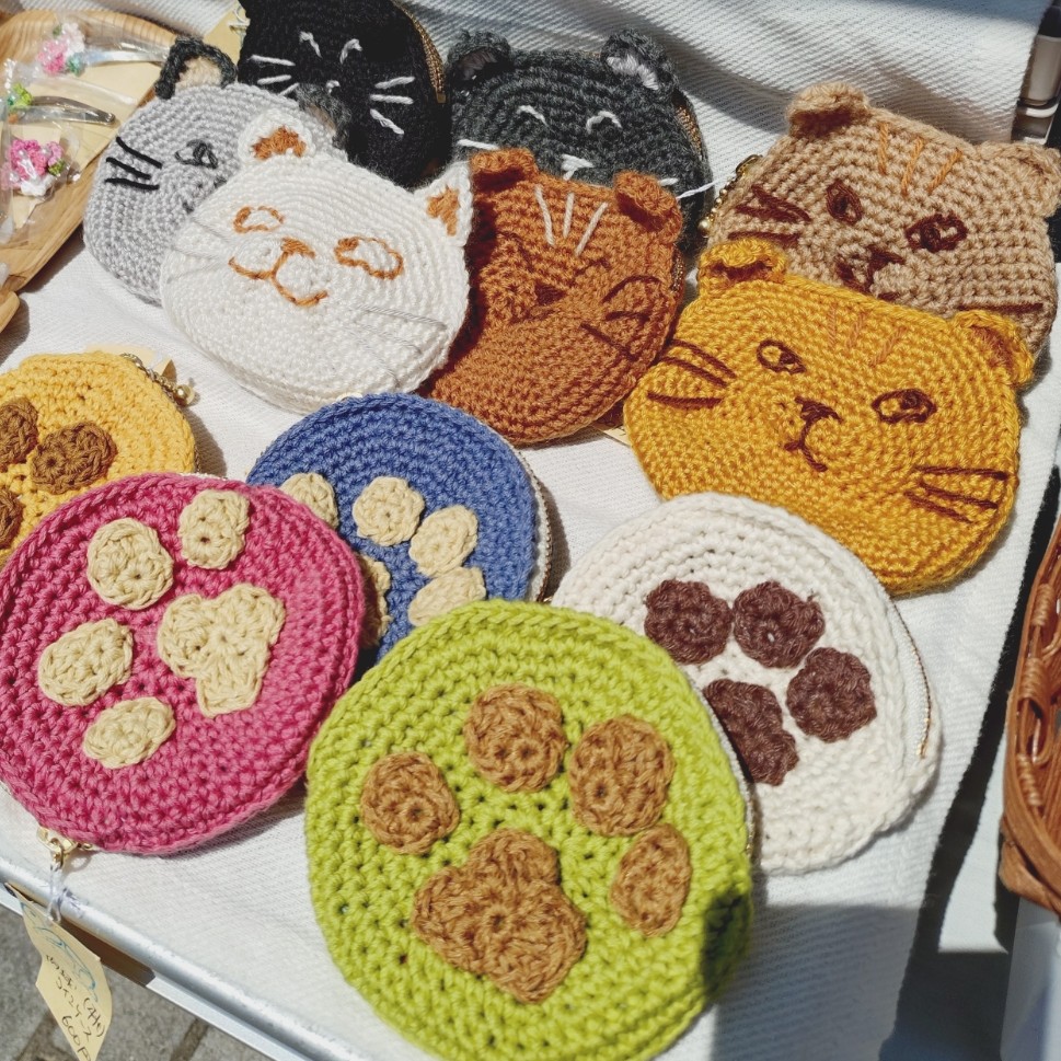 編み小物(モチーフバックやネコのコインケース)