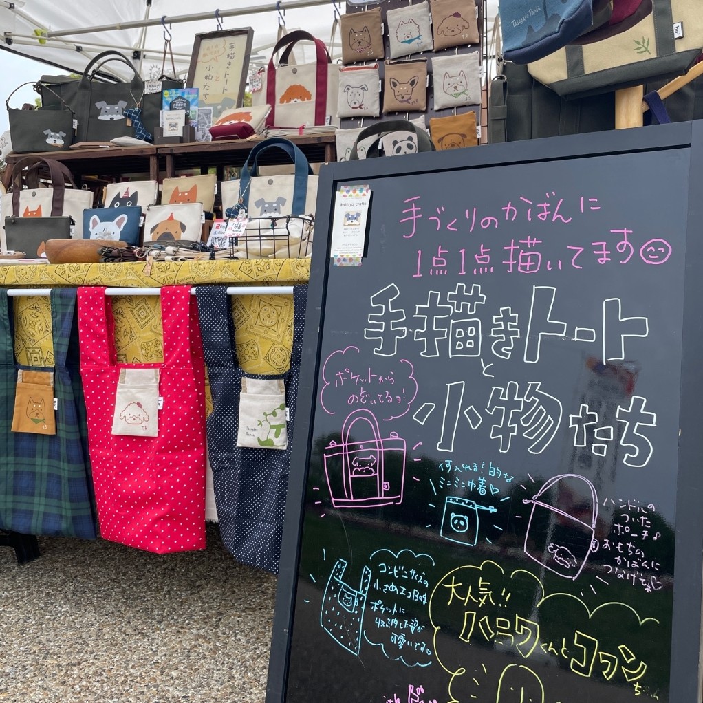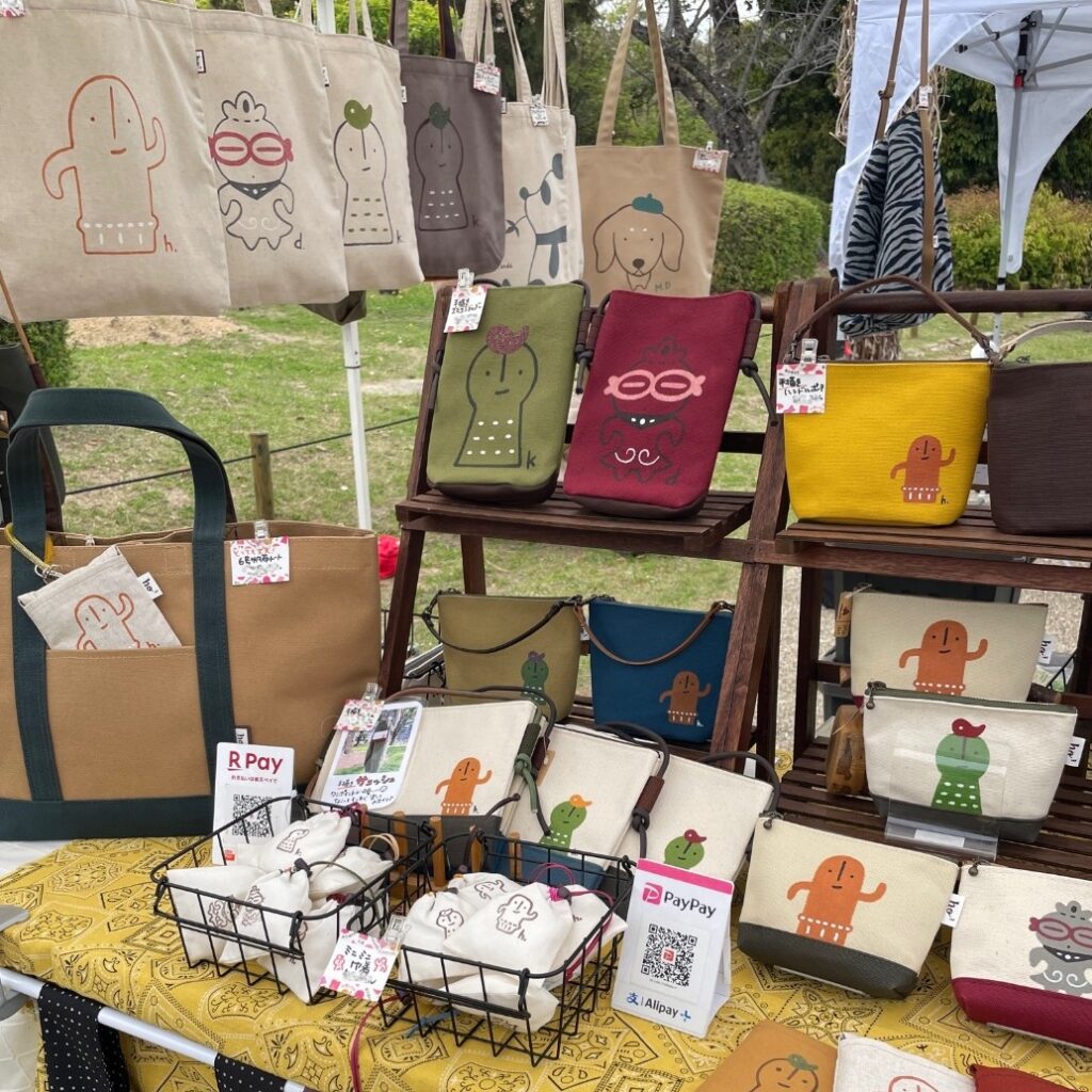 動物や古代モチーフの可愛いイラストを1点1点直に手描きした手作りのバッグ&小物をイベントで販売しています。