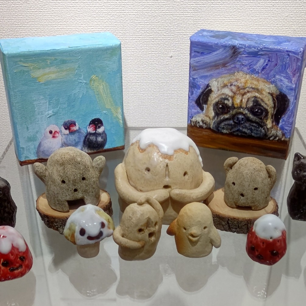 陶芸や油彩画による、はにわちゃんたちや古墳モノを展示販売いたします。その他、陶芸でできたおにぎりや苺ちゃん、動物たち、海のかけらのアクセサリーやキャンバスに描かれた油彩画やミニ額作品も出品します。