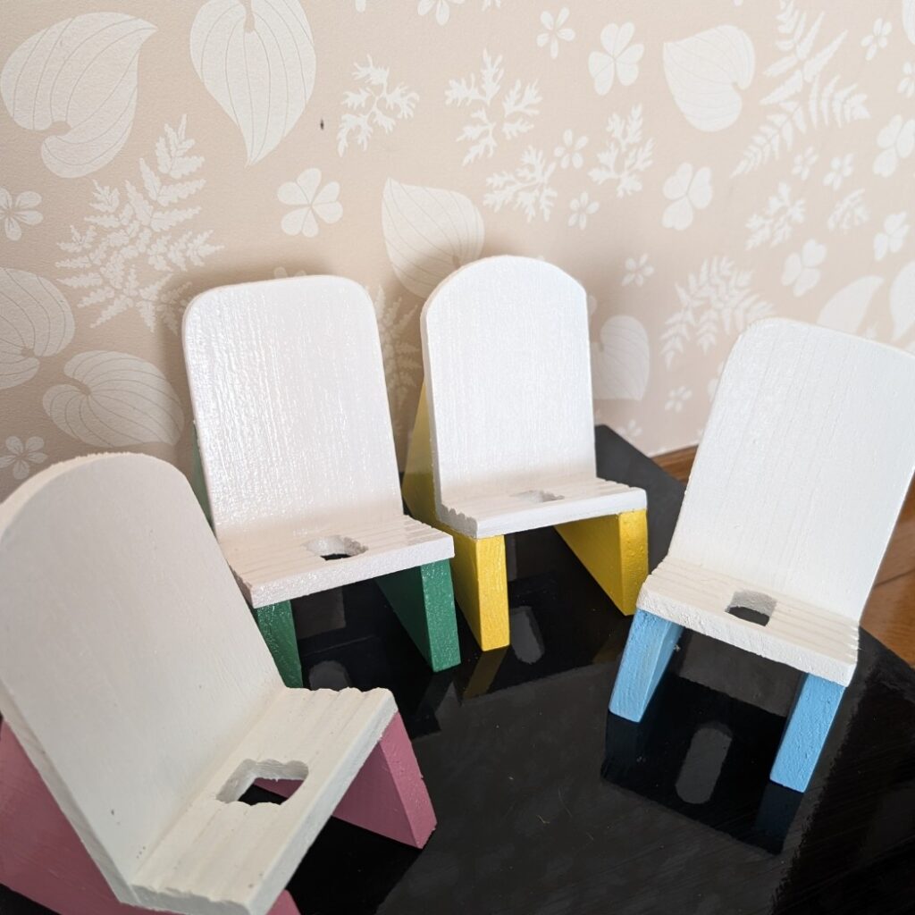 座り心地の良い木製の幼児用椅子、素敵なお花を飾っていただけるフラワースタンド、スマホスタンド、デコパージュ仕上げの小引き出しなどオンリーワンの作品ばかり。