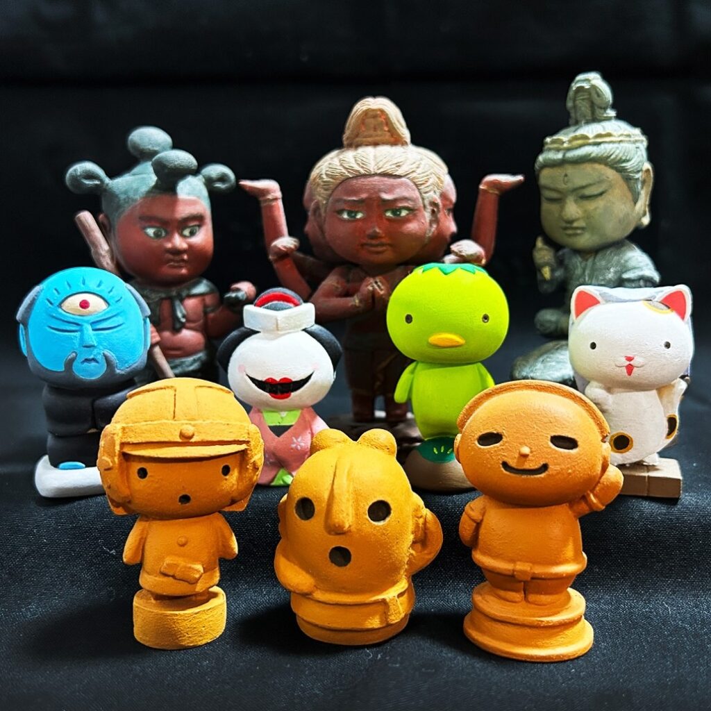 フィギュアを「立体イラスト」として、レジンキャストにアクリル絵の具彩色で、仏像、妖怪、縁起物、埴輪など日本で古くから親しまれているモチーフをアレンジした立体造形をしています。