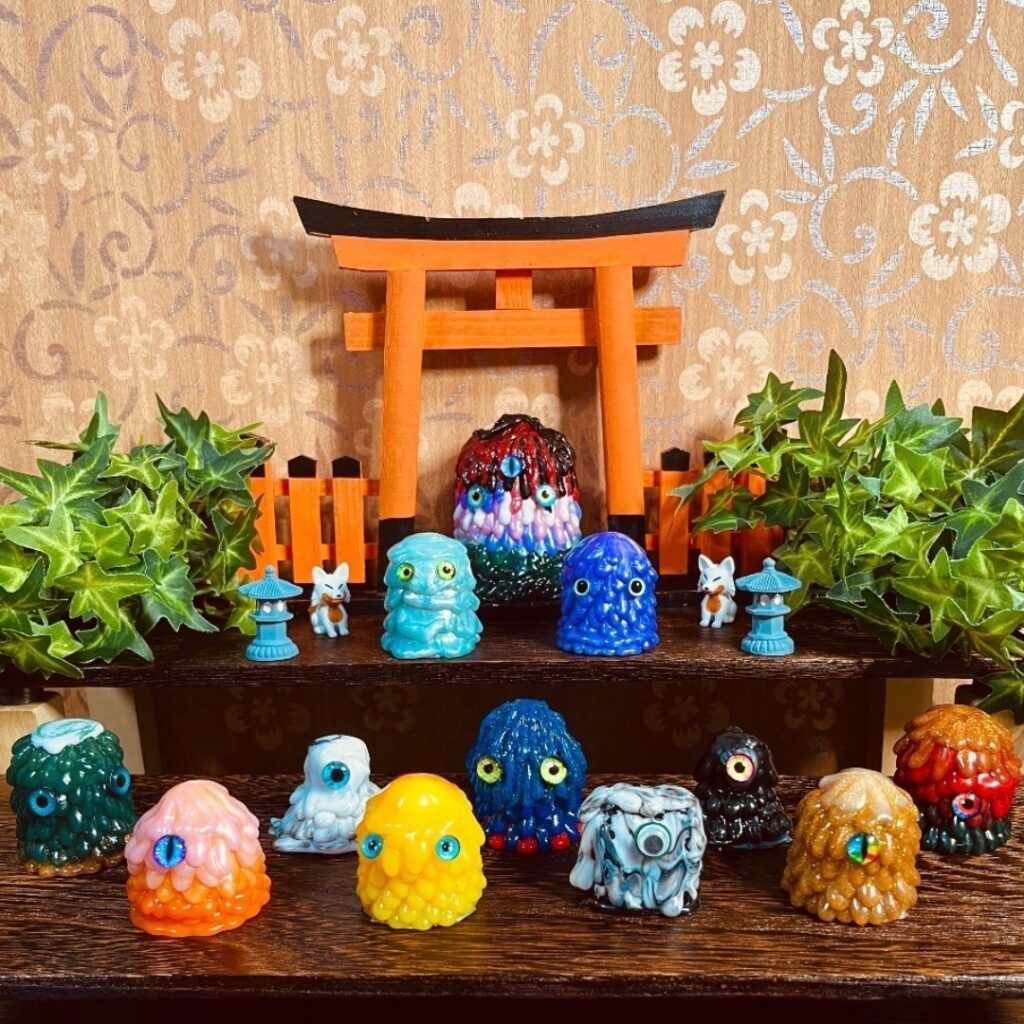 妖怪アート雑貨を作る剣藍堂と妖怪や神仏・埴輪のフィギュアを作るpeascodとのシェア出店になります