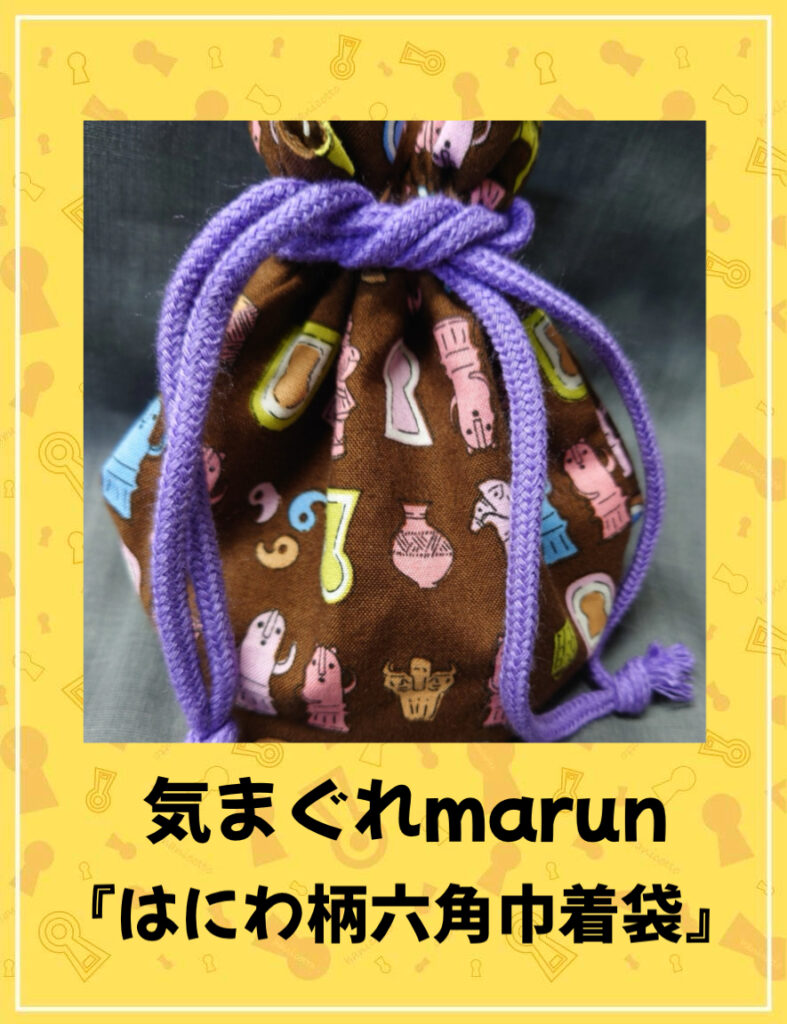 出品作品はまるっと可愛いはにわ柄六角巾着袋です