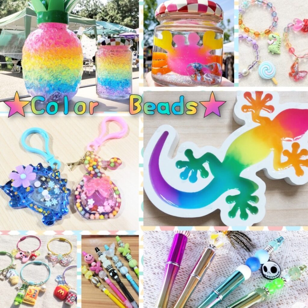 また、レジンで作ったモチーフに小さなビーズを入れる?*。シャカシャカキーホルダーやかわいいパーツで飾るホイップデコレーションのヘアブラシや鏡など色々な体験をご用意しております。