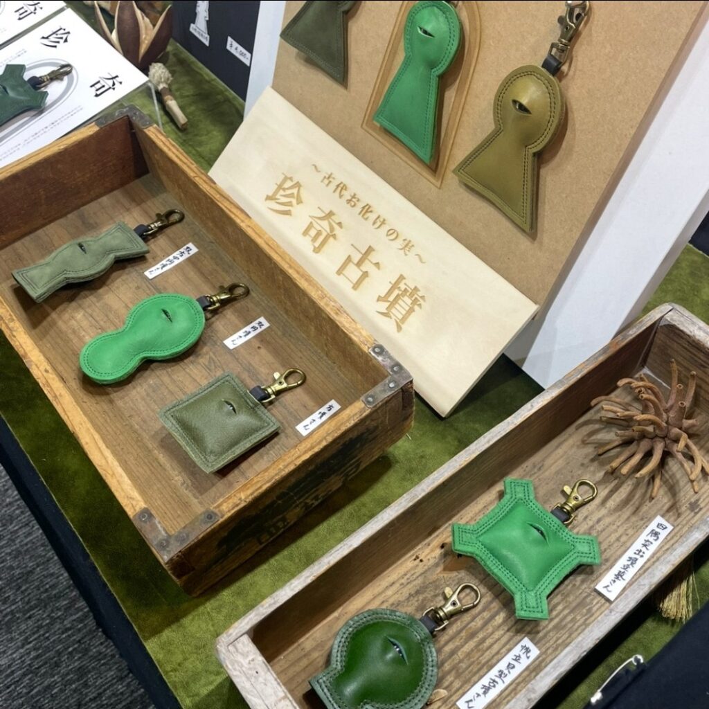 チャームだけでなく、ブックカバーや小さなポーチなど意外と実用的なものもあります。とぼけた存在でありながら、本格的な革の手触りをしっかり楽しめるところがポイントです。