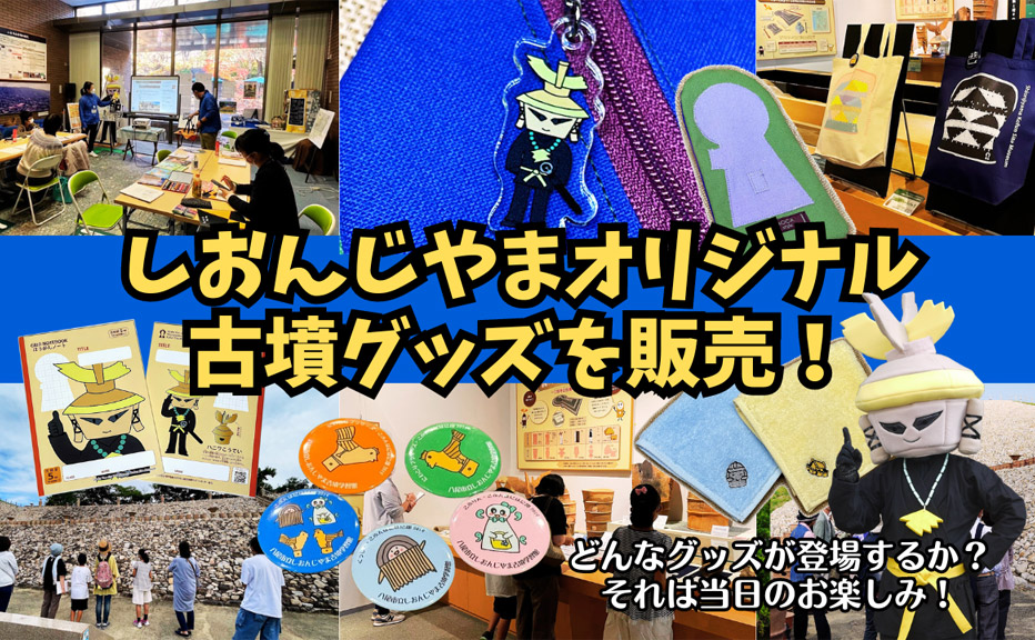 大阪府八尾市にある「国史跡心合寺山(しおんじやま)古墳」や、当館を本拠地に古墳をPRしながら世界征服を目指している「ハニワこうてい」を紹介するグッズを販売します!