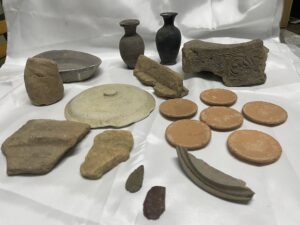 ①当会の活動や調査に関するパネルでの簡単な紹介②会誌の販売③本物の古代のハニワ・須恵器・瓦・土師器などに触れるコーナーーを実施致します。