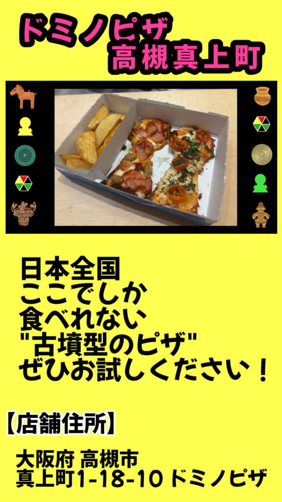古墳フードドミノピザ高槻真上町 2025年10月6日2025年10月6日 - by はにコット はにコット古墳フェスはにコットに関するページです。 毎年11月に今城塚古墳で古墳とアートのイベントを開催しています。 2024年vol.13 14回目の開催です。 来場者40,000人。(コロナ禍でもリモート開催で35,000人の来場者)