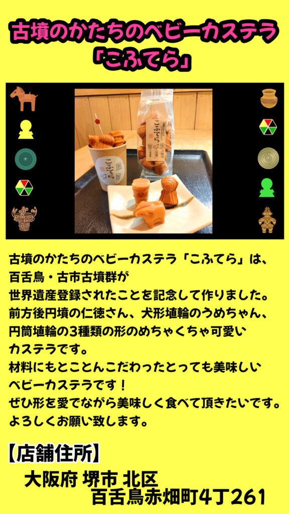 古墳フード古墳のかたちのベビーカステラ「こふてら」 2025年10月6日2025年10月6日 - by はにコット はにコット古墳フェスはにコットに関するページです。 毎年11月に今城塚古墳で古墳とアートのイベントを開催しています。 2024年vol.13 14回目の開催です。 来場者40,000人。(コロナ禍でもリモート開催で35,000人の来場者)