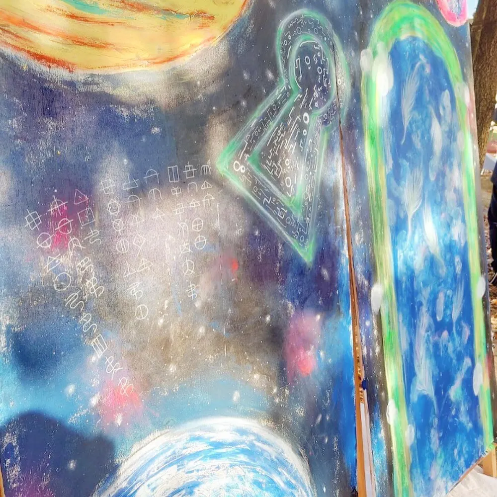 2000年にN.Yの路上でポストカードに絵を描き販売、現在はコンテナハウスにてお花屋さんをしています。イベントなどではインスピレーションアートとして人のオーラをパステルで描いています。他には地元の子供達と一緒にコンテナハウスに絵を描いたり、駅のロータリー花壇にお花を植えたりと町の活性化に花とアートを取り込む活動をしています。