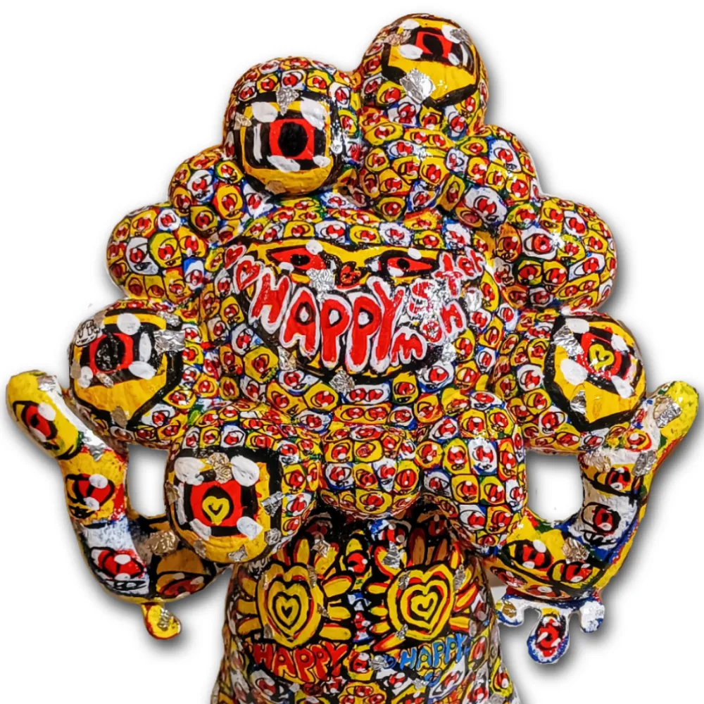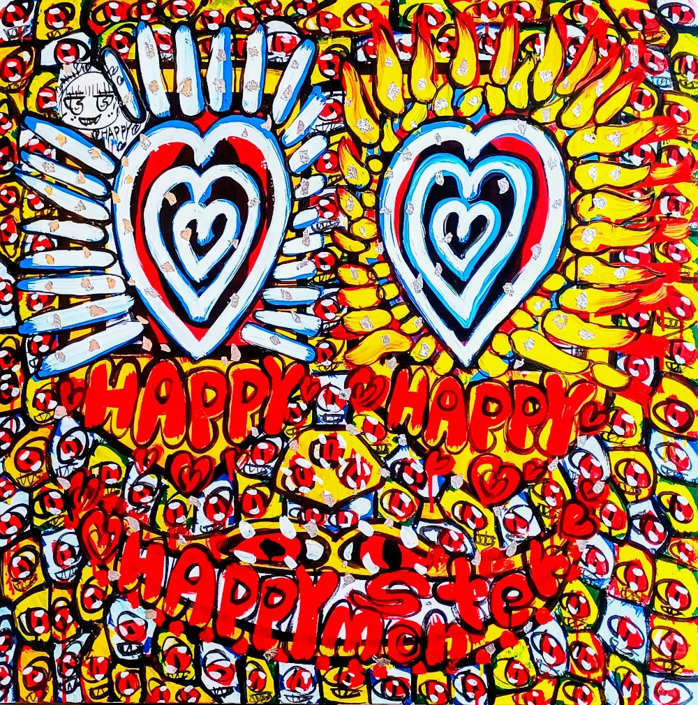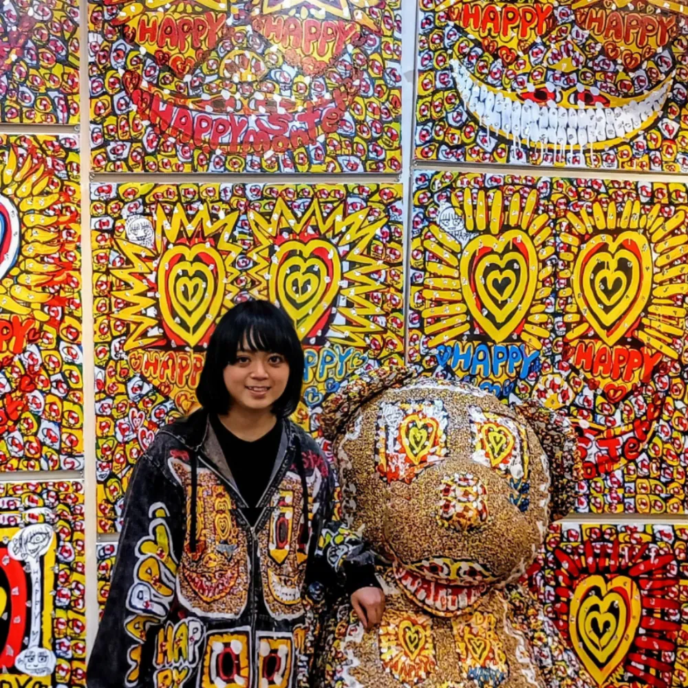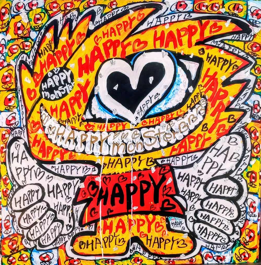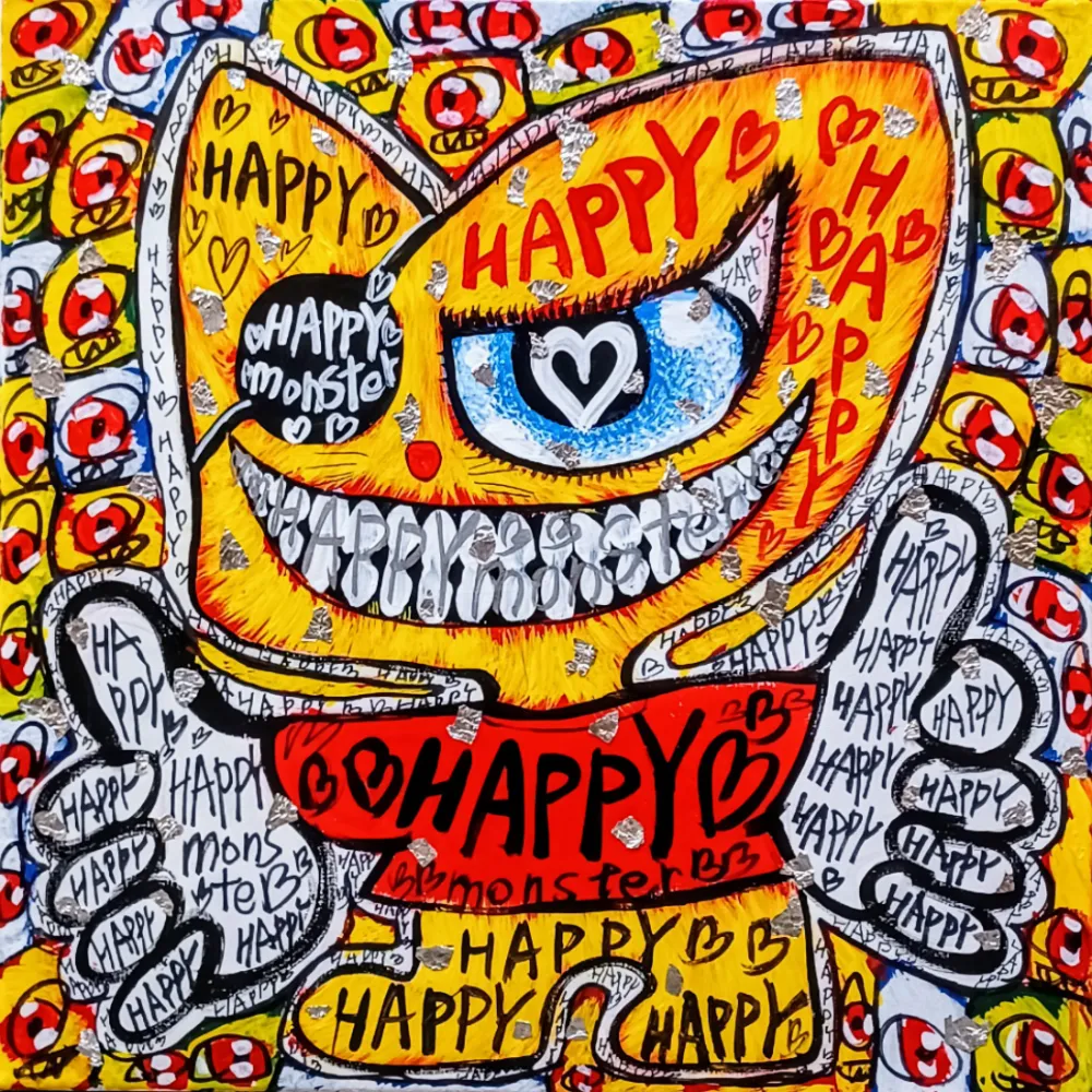 大阪を拠点とし、大阪、たまに東京などで展示を月1のペースで開催。与えられた壁を全て埋め尽くす手法で飾りつけをする。自身が生み出したオリジナルキャラクター「ハッピーモンスター」の絵を壁全てに飾り、見る人を元気にするのがハッピーモンスターであり、彼のアートである。