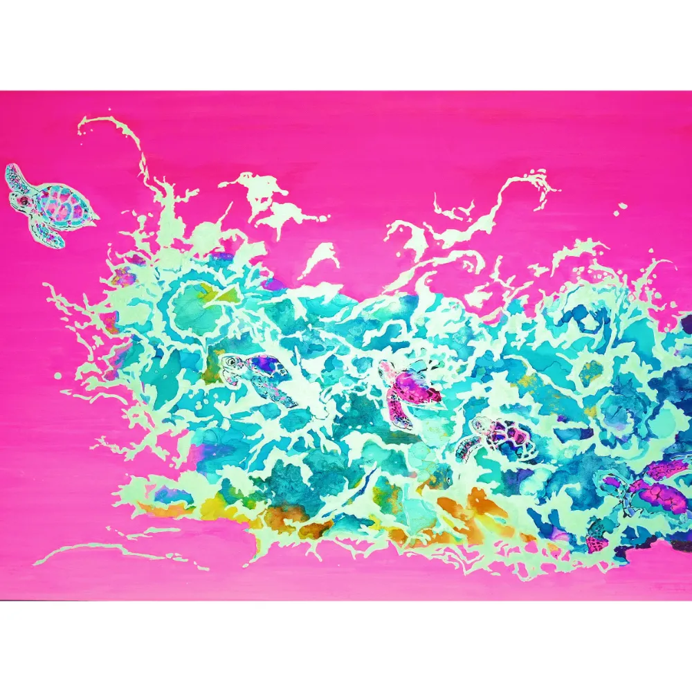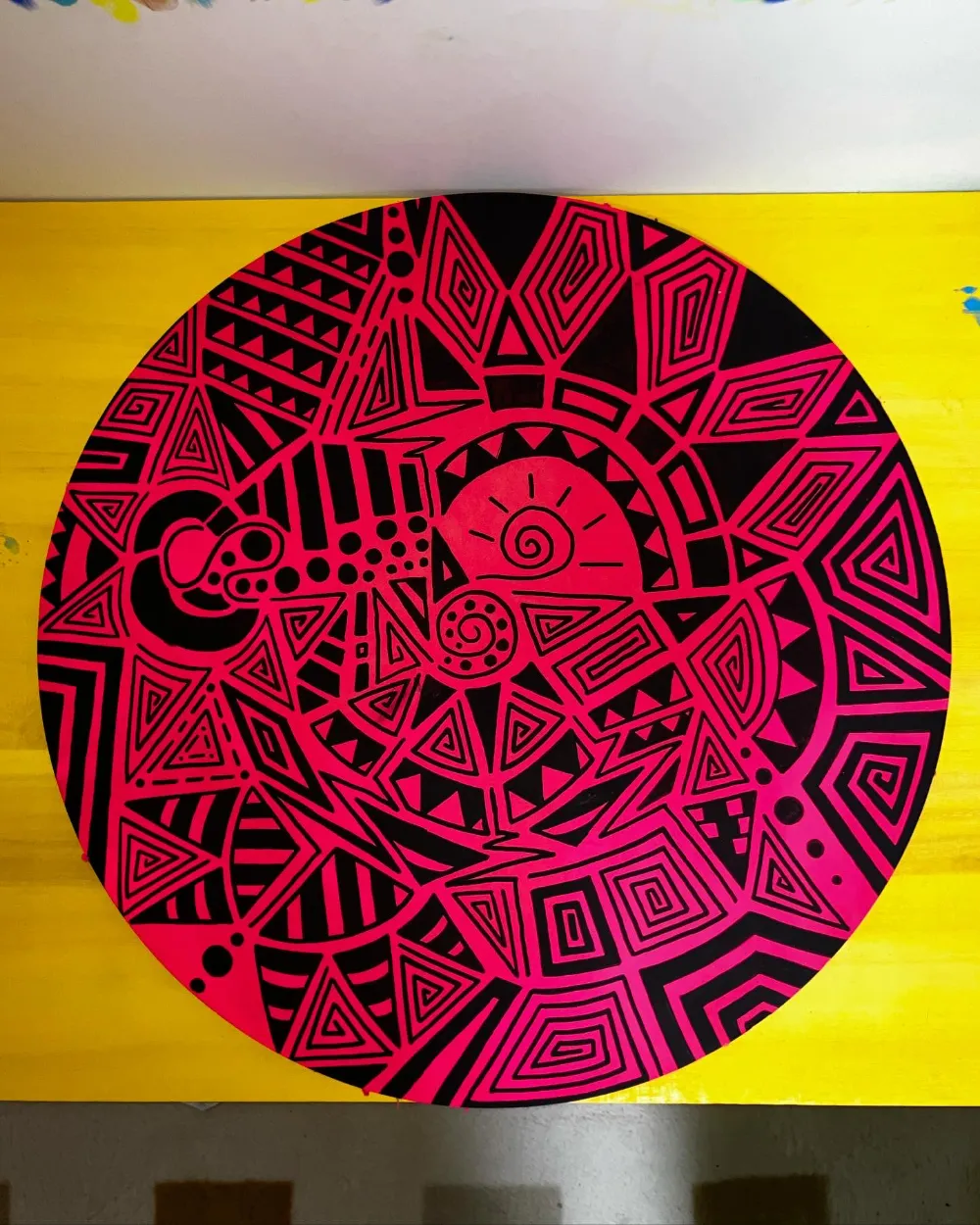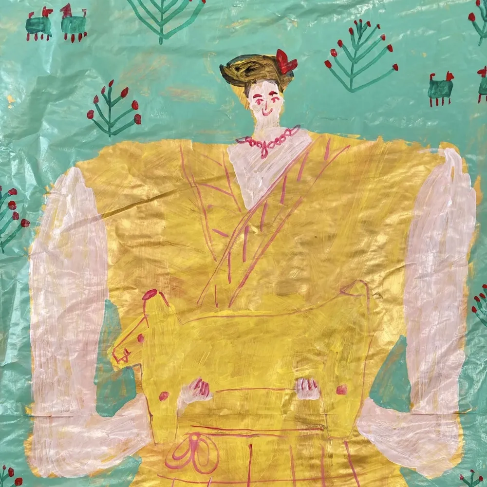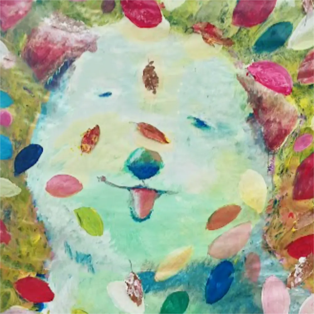 基本的に、自由気ままにインスピレーションで描くスタイルで、アクリル絵の具やポスカなどを使い、明るい色を中心に好んで描いています。
