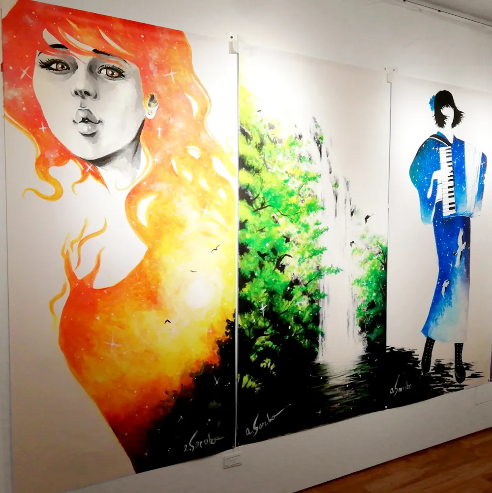 アートイベント・アートフェアや展覧会などで実際にお客さんと触れ合いながら学びつつ、楽しく気持ちよく描くことをモットーに日々制作しています。